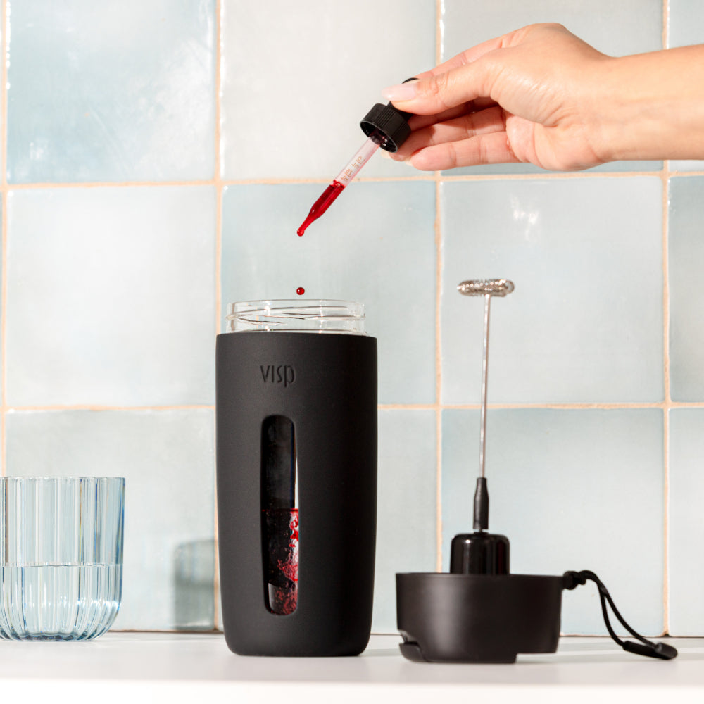 This upgraded version of our cult-favorite mixer features a more powerful motor, improved waterproofing, and two speed settings to froth better than ever before. Our durable glass bottle has an electric whisk built right into the lid, so you can mix your favorite drinks wherever and whenever you please. Just add water, hot or cold, and your powder of choice. Screw on the leakproof lid, press the button, and enjoy a smooth blend. Whether it’s matcha, protein, electrolytes, or adaptogens, Elixir Mixer 2 makes drink prep effortless.